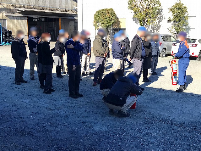 新町工場では消防署の方の指導の下、消火訓練も行いました。